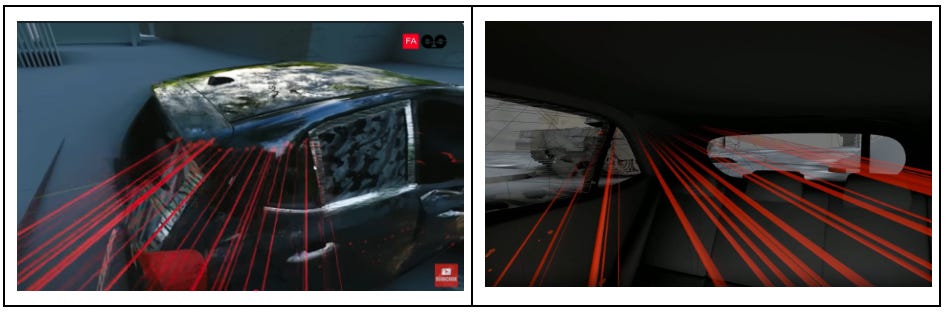 Finally, FA claimed — based on a 3D reconstruction model — that Israeli tank crews had a “clear line of sight” to two children inside the car, implying a deliberate execution at point-blank range. However, according to reports, the girls were seated in the rear of the car, and in the recorded call Layan explicitly says, “We are hiding in the car”, suggesting that they were crouched behind the headrests and seatbacks.